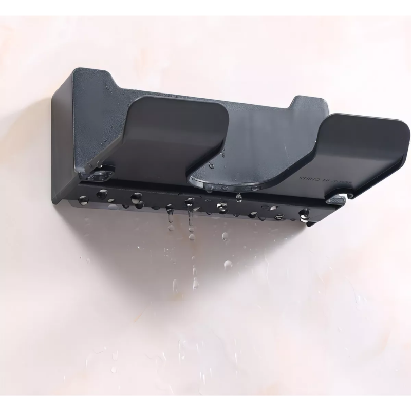 Este soporte para secadora de pelo permite almacenar tu secador y otros accesorios de baño, además de sostener el secador de forma segura durante su uso, liberando tus manos.