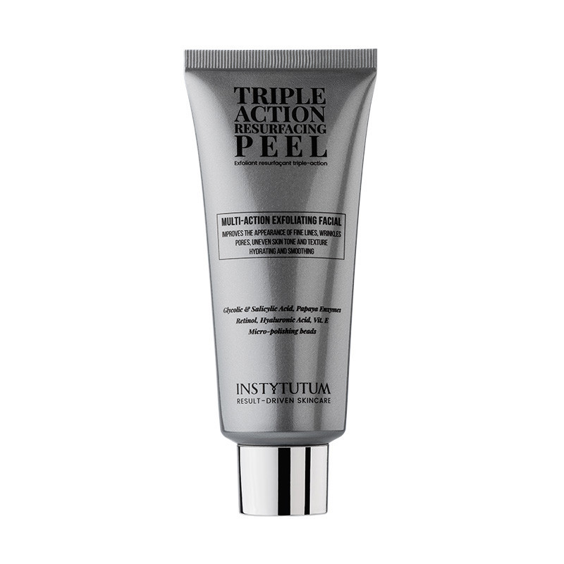 Exfoliante facial de triple acción que transforma la textura y el tono de la piel de inmediato. Contiene un 10 % de ácido glicólico y salicílico, encima de papaya y microperlas de pulido para rejuvenecer las células de la piel. El retinol, que actúa como renovador, el ácido hialurónico, la provitamina B5 y la vitamina E hidratan, calman y regeneran la piel. Ayuda a reducir el aspecto de las líneas de expresión, las arrugas y los poros mejorando la apariencia de la decoloración y las imperfecciones para conseguir una tez más brillante, suave y renovada. pH 3,5. Modo de empleo: Aplicar una capa uniforme sobre el rostro, el cuello y el escote evitando la zona de los ojos y masajear en círculos durante 1-3 minutos. Dejar actuar durante 5-8 minutos para obtener unos resultados óptimos. Enjuagar minuciosamente con agua templada. En caso de piel sensible, utilizar como una mascarilla sin exfoliar y dejar actuar durante 3-5 minutos. Si aparecen signos de irritación, esperar durante intervalos más largos entre los tratamientos. Para conseguir el mejor resultado, utilice este exfoliante 1-2 veces a la semana y, a continuación, aplique su sérum o crema. Atención: Solo para uso externo. Manténgalo alejado de los ojos y el tejido mucoso. Evite la radiación UVA directa (sol o rayos UVA). Utilice siempre un factor de protección solar alto, ya que el producto contiene AHA y BHA (FPS mínimo de 30). Si aparecen irritaciones en la piel, deje de utilizar el producto y consulte a un médico. Manténgalo alejado de los niños. Consulte a un médico antes de utilizar el producto durante el embarazo o la lactancia.