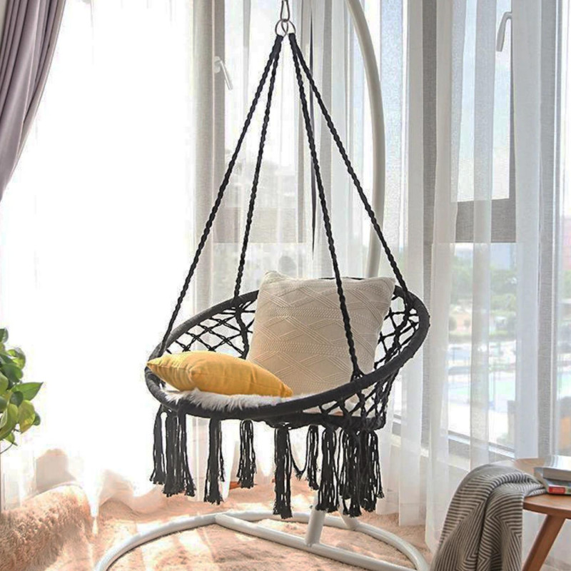 También se puede colgar en interiores, luce muy bien en cualquier rincón de la casa. Alto confort: La silla colgante tiene un tejido suave y respirable, garantizando comodidad por largo tiempo.