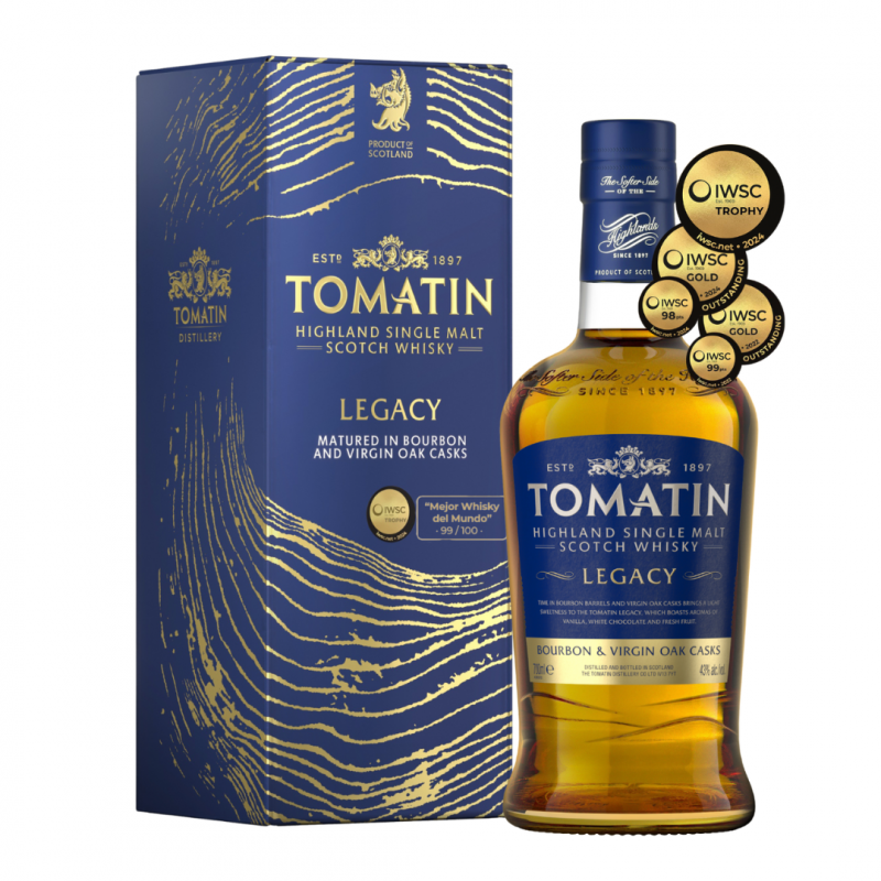 El tiempo en barriles de bourbon y barriles de roble virgen aporta un ligero dulzor al legado de Tomatin, que posee aromas de vainilla, malvavisco, piña y limón. En el paladar, los sabores suaves de caramelo, pino, limón, manzanas y bizcochos emergen delante de un acabado final redondo y bien definido.