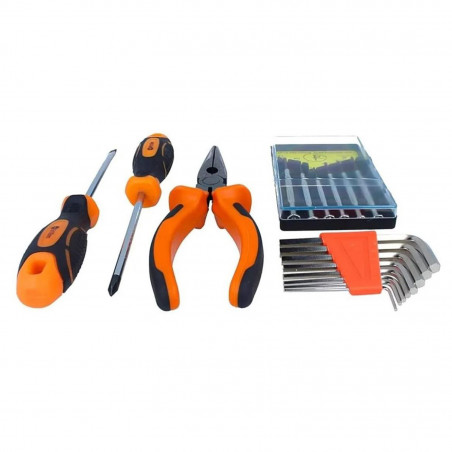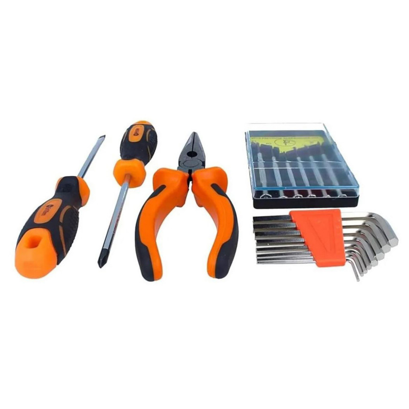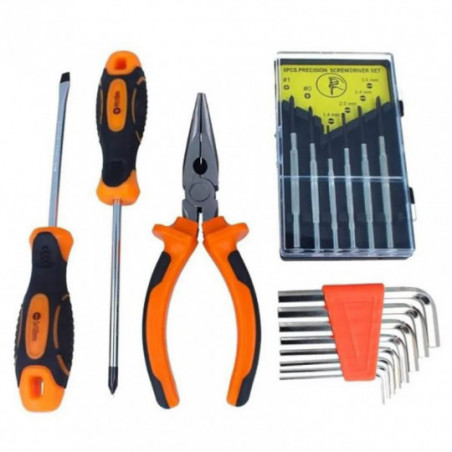 Este Set posee todos las herramientas domesticas que necesitas, en un diseño compacto para facilitar el almacenamiento. Es ideal para utilizar en casa, trabajo y llevarlo de vieje. Está fabricado con acero inoxidable diseñado para una larga duración.