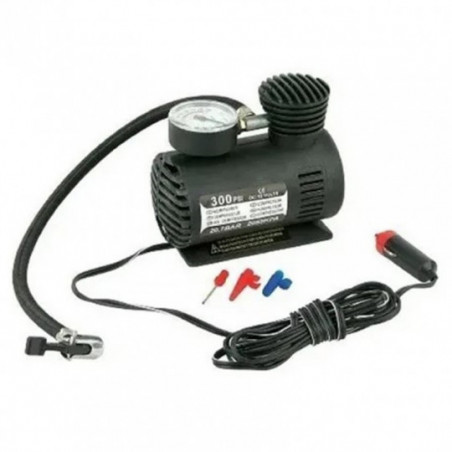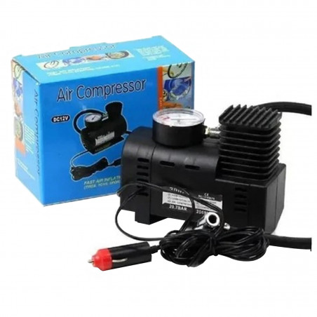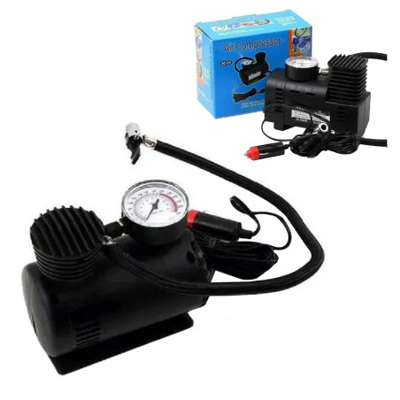 Compresor de Aire Para AutoInflador de fácil manejo impulsado por su encendedor del automóvil. Debe conectarlo a su encendedor del coche para la energía, deslice el adaptador universal sobre la válvula del neumático y usted está listo para inflar con fines de emergencia