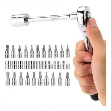 Robusto compacto y de alta calidad set de dados y puntas de destornillador equipado con 46 piezas incluye una colección de los más populares sockets, puntas y más.