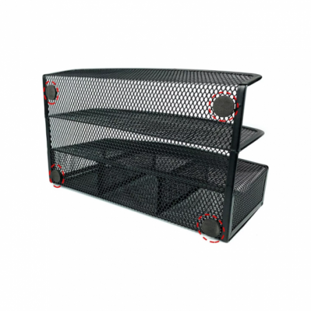 Este organizador de escritorio cuenta con 5 compartimentos para almacenar artículos de papelería como bolígrafos, lápices, marcadores, libretas y correos, ayudando a mantener el lugar de trabajo limpio y ordenado.