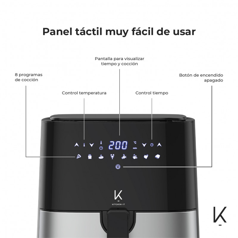Equipada con una pantalla táctil intuitiva, la Plus Edition ofrece una mejor cocción gracias a la circulación de aire caliente a altas temperaturas (hasta 200°C), que asegura una distribución uniforme del calor para resultados perfectos. Además, cuenta con 8 programas predefinidos que simplifican la preparación de una amplia variedad de platillos, desde pollo frito hasta papas crujientes, y todo hecho en casa.