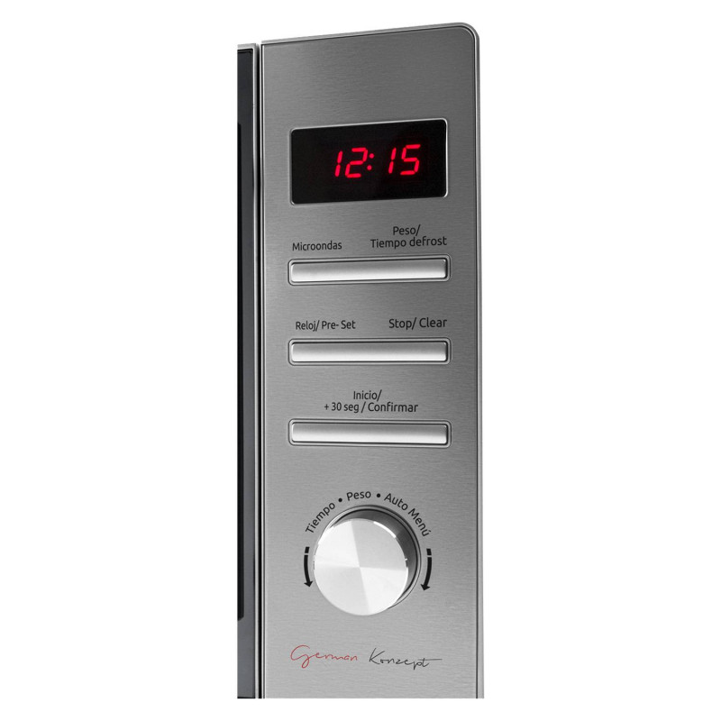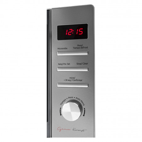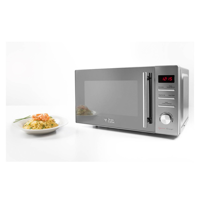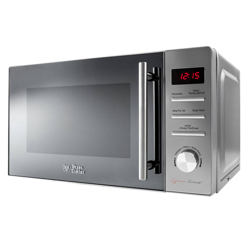 El microondas digital Ursus Trotter UT-CLASSY720 cuenta con 720W de potencia, ideal para calentar y cocinar. Su diseño moderno incluye un panel digital fácil de usar y un acabado elegante. Equipado con plato giratorio y diversas funciones preprogramadas, optimiza la preparación de alimentos.