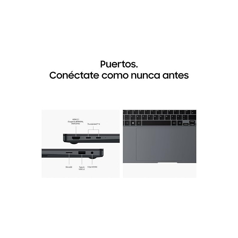 La productividad extrema está al alcance de la mano con el enorme panel táctil y los versátiles puertos integrados: HDMI, USB-A, ranura microSD mejorados e incluso dos puertos Thunderbolt 4 para transferencias de archivos de 40 Gbps ultrarrápidas. Simplemente conéctate y comienza a crear, sin dongle.