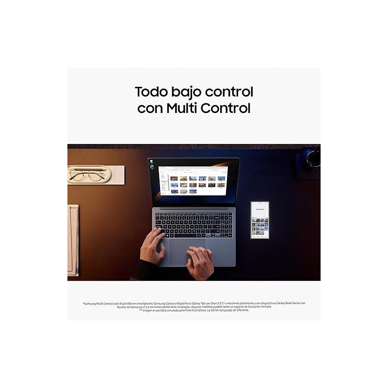 Con un peso de apenas menos de 1,9 kg y un elegante acabado Moonstone Gray, el aspecto refinado de la Galaxy Book4 Ultra es el de los libros. Encerrado en un cuerpo delgado y duradero, es su estudio creativo portátil en el camino hacia la inspiración