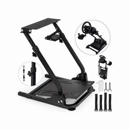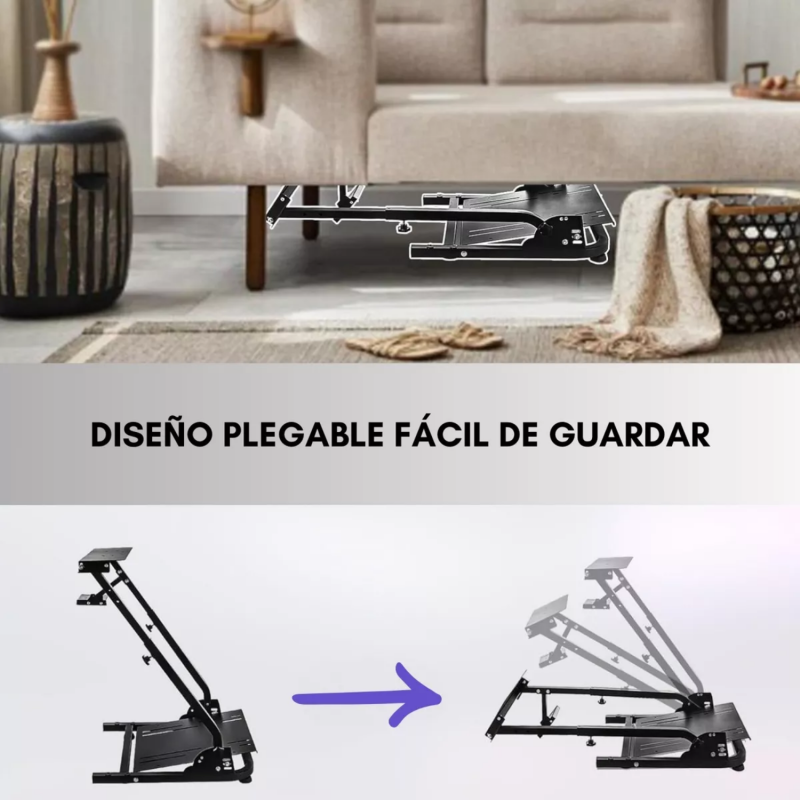 Soporte de volante con exclusivo diseño plegable y ajustable. El soporte es muy compacto y requiere poco espacio cuando no se usa, así que podrás guardarlo fácilmente en el closet o debajo de la cama. Los soportes de volante es utilizado por pilotos profesionales y aficionados para simular carreras y aprender nuevos circuitos.
