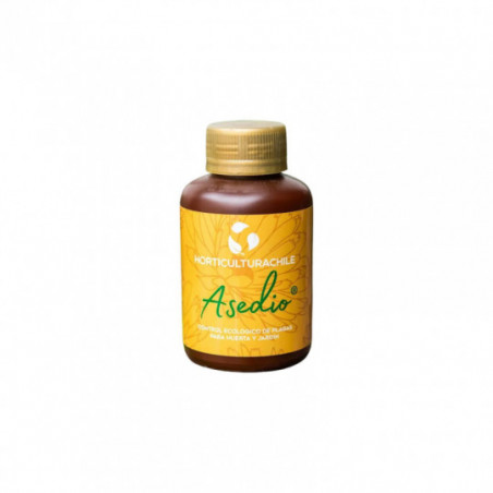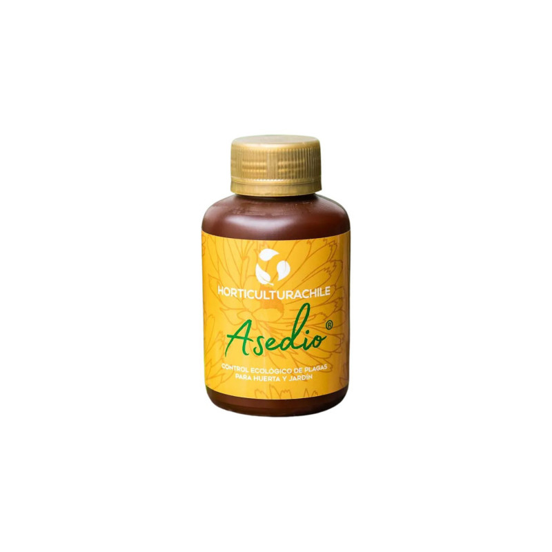 Asedio es un excelente controlador ecológico de plagas, fungicida foliar, repelente natural de insectos plaga, estimulante del crecimiento y regenerador del tejido vegetal, formulado con Jabón Potásico Horticulturachile y Aceite de Neem 100% puro prensado en frío libre de solventes y aditivos sintéticos.Asedio es biodegradable y libre de tóxicos, seguro para humanos, mascotas e insectos polinizadores, apto para huertos, jardines, plantas de interior, cultivos y todo tipo de árboles frutales, cuyo principio activo es la azaradictina proveniente del fruto del árbol del neem, originario de India.