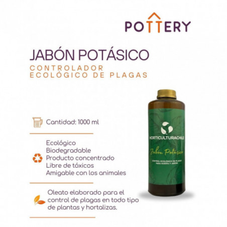 Jabón Potásico es una solución potásica procedente de aceites vegetales saponificados, de tipo natural, ecológica y biodegradable.