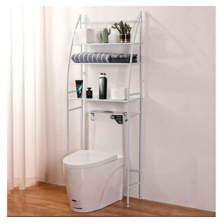 Hecho de poste de hierro de alta calidad, resistente y duradero, que tenga un largo tiempo de servicio. Utiliza eficazmente el espacio sin usar sobre el inodoro, creando múltiples espacios de almacenamiento extra para el baño lleno de gente.