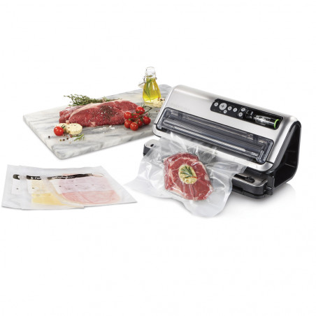 Incluye: 3 bolsas de 0.94 l., 2 bolsas de 3.78 l 2 bolsas con cierre de 0.95 l y 1 rollo de 28 cm. x 3 m. Todos los accesorios son libres de BPA.