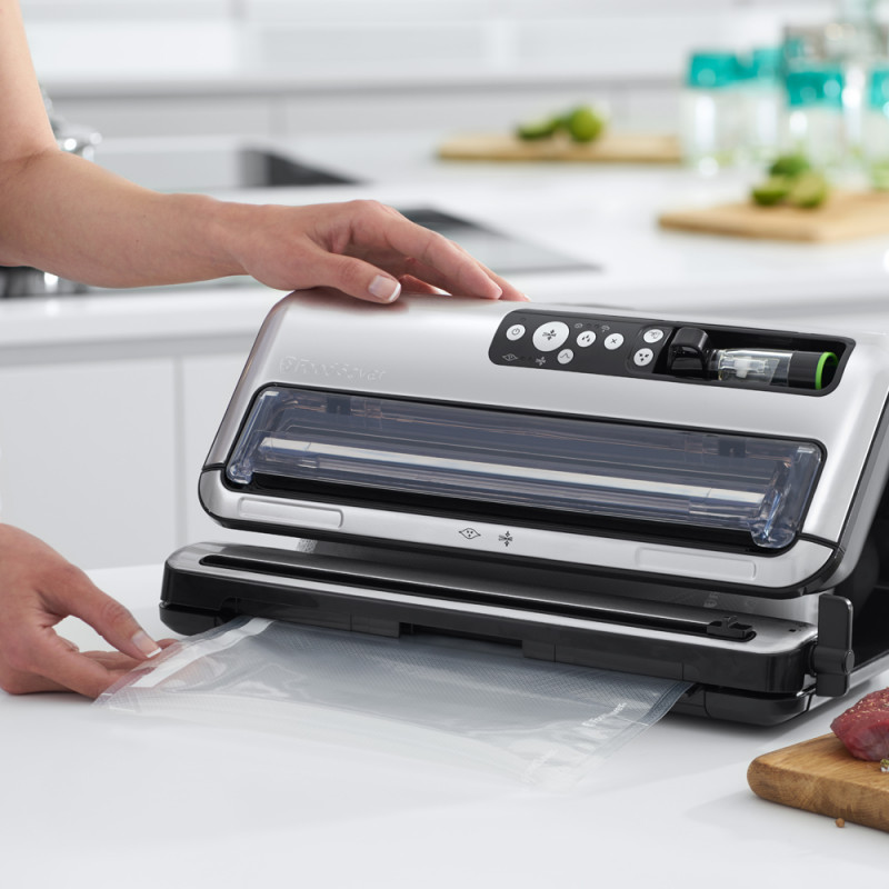 Este sistema de sellado al vacío top de línea FoodSaver tiene un sistema de operación manos libres, detección automática de líquidos y varias funciones para el sellado de alimentos el FoodSaver 006X es el sellador al vacío más automatizado reduciendo la cantidad de pasos en un 50% y hace más eficiente el uso de bolsas en un 30%.