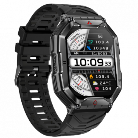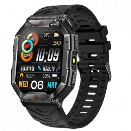 Introduciendo el SmartWatch Kei Armor 3, La ultima versión del modelo todo terreno por excelencia. Con el tendrás 50 ATM lo que se traduce en resistencia en presión hasta 50 metros bajo el nivel del mar. Pero no sólo ese ya que su excelente diseño ha pasado numerosas prueba militares dando una usabilidad de otro mundo, hasta 13000 metros sobre el nivel del mar, resistencia a 100 horas de corrosión de agua marina, sistema anticolisión, entre otros. Sin contar su pantalla multitask, su durabilidad de casi un mes y más.