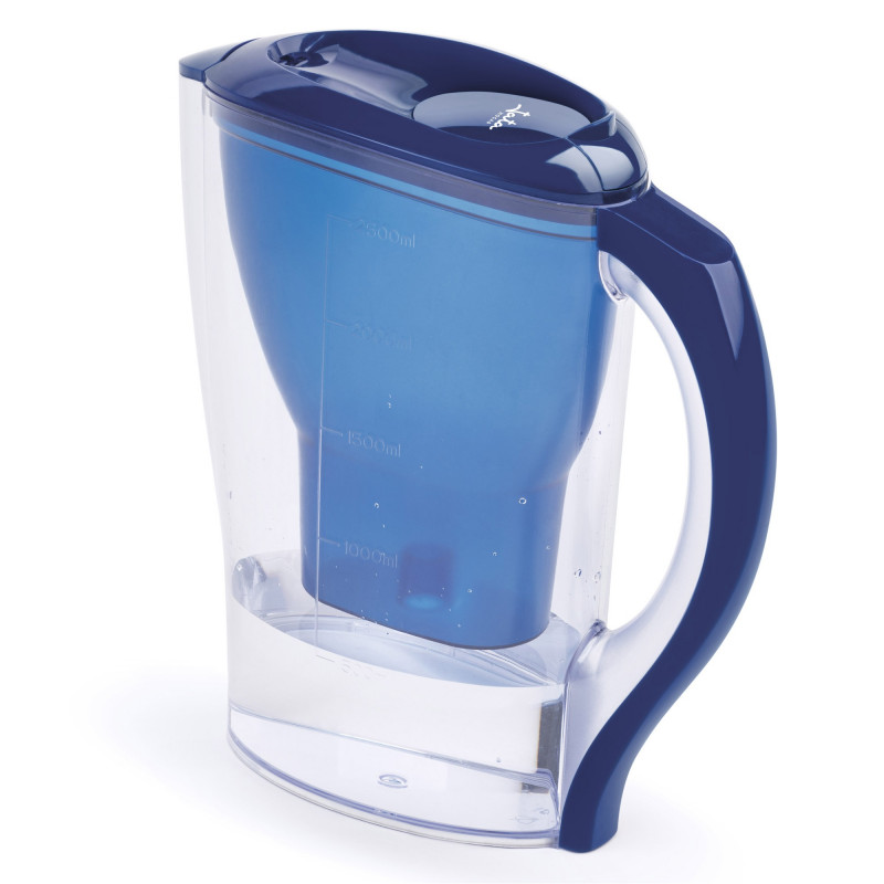 Espectacular jarra filtradora de agua. Incluye 6 filtros. Capacidad total 2,5 l. Filtro iónico exclusivo jata hogar. Mejora la calidad y el sabor del agua manteniendo los minerales esenciales. Reduce el cloro hasta un 80%. Reduce la cal hasta un 95%. Reduce residuos de cobre hasta un 50%. Mantiene el ph del agua entre 7-8. 150-180 litros de filtrado ó 30-45 días. Indicador manual de control del filtro. Diseño apto para la puerta del refrigerador. Base anti-deslizante. Asa ergonómica