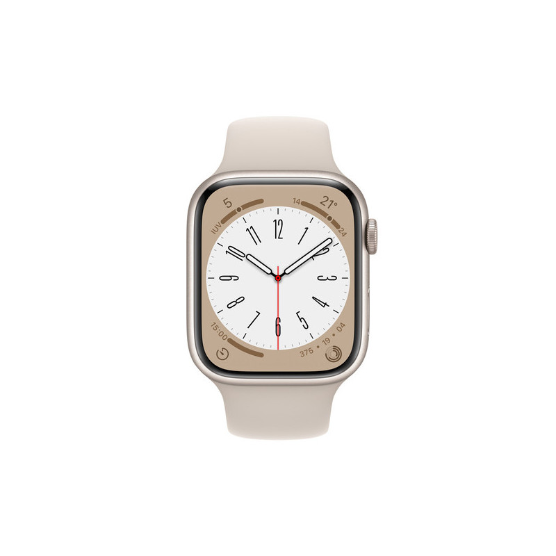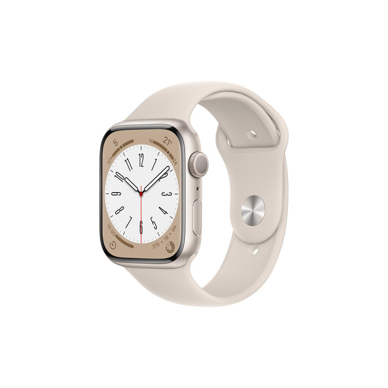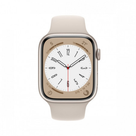 El Apple Watch Series 8 viene con apps y sensores de salud avanzados con los que puedes hacerte un electrocardiograma, medir tu frecuencia cardiaca y nivel de oxígeno en sangre, y registrar cambios de temperatura para obtener información relevante sobre tu ciclo menstrual.Además, incluye Detección de Choques, datos sobre las fases del sueño y métricas avanzadas de entrenamiento para ayudarte a llevar una vida más activa, saludable, segura y conectada. El Apple Watch Series 8 requiere un iPhone 8 o posterior con iOS 16 o posterior La app ECG y la notificación de ritmo irregular requieren las últimas versiones de watchOS y iOS, y no fueron diseñadas para que las usen menores de 22 años. La app ECG está disponible en el Apple Watch Series 4 o posterior (con excepción del Apple Watch SE). La notificación de ritmo irregular no fue diseñada para personas que hayan sido diagnosticadas con fibrilación auricular El Apple Watch Series 8 tiene una clasificación de resistencia al agua de 50 metros según la norma ISO 22810:2010. Esto significa que puede usarse para actividades en aguas poco profundas, como nadar en una piscina o en el mar. Sin embargo, el Apple Watch Series 8 no debe usarse para buceo, esquí acuático u otras actividades que impliquen agua a alta velocidad o inmersión profunda. La resistencia al agua no es una condición permanente y puede disminuir con el tiempo. Consulta support.apple.com/es-cl/HT205000 para obtener más información.