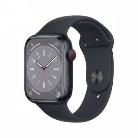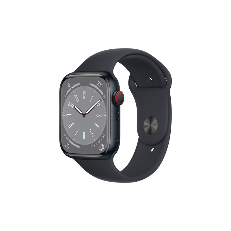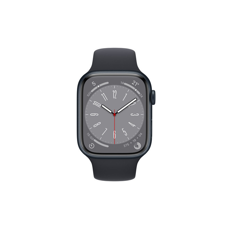 El Apple Watch Series 8 viene con apps y sensores de salud avanzados con los que puedes hacerte un electrocardiograma, medir tu frecuencia cardiaca y nivel de oxígeno en sangre, y registrar cambios de temperatura para obtener información relevante sobre tu ciclo menstrual.Además, incluye Detección de Choques, datos sobre las fases del sueño y métricas avanzadas de entrenamiento para ayudarte a llevar una vida más activa, saludable, segura y conectada. El Apple Watch Series 8 requiere un iPhone 8 o posterior con iOS 16 o posterior La app ECG y la notificación de ritmo irregular requieren las últimas versiones de watchOS y iOS, y no fueron diseñadas para que las usen menores de 22 años. La app ECG está disponible en el Apple Watch Series 4 o posterior (con excepción del Apple Watch SE). La notificación de ritmo irregular no fue diseñada para personas que hayan sido diagnosticadas con fibrilación auricular El Apple Watch Series 8 tiene una clasificación de resistencia al agua de 50 metros según la norma ISO 22810:2010. Esto significa que puede usarse para actividades en aguas poco profundas, como nadar en una piscina o en el mar. Sin embargo, el Apple Watch Series 8 no debe usarse para buceo, esquí acuático u otras actividades que impliquen agua a alta velocidad o inmersión profunda. La resistencia al agua no es una condición permanente y puede disminuir con el tiempo. Consulta support.apple.com/es-cl/HT205000 para obtener más información.